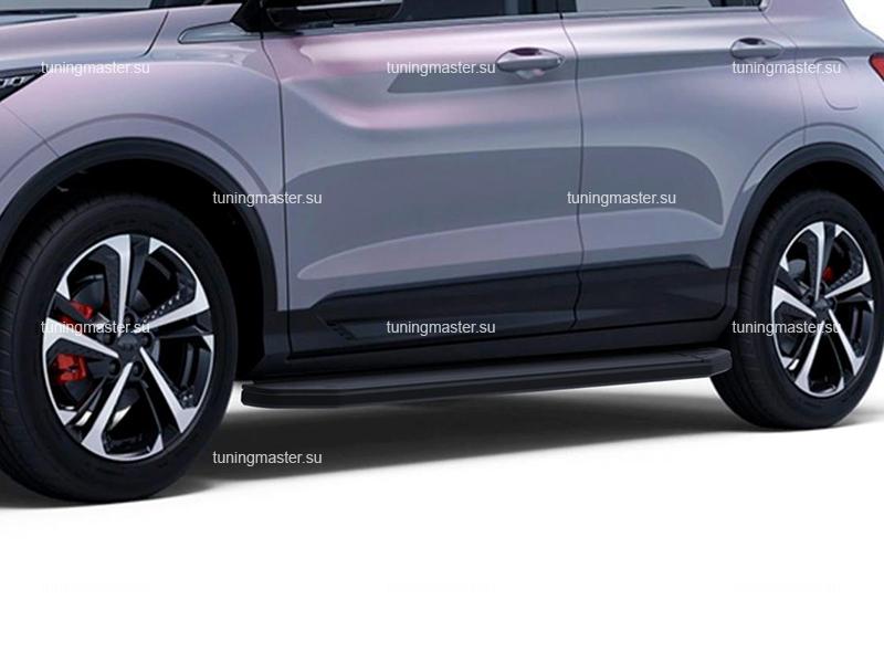 Боковые пороги для Geely Coolray SX11 (Premium Black). Боковые подножки для автомобиля Джили Кулрейл предназначены для облегчения посадки и высадки пассажиров, а также для защиты кузова от механических повреждений при парковке близко к бордюру или другим препятствиям. Установка боковых порогов обычно производится на заводе при сборке автомобиля Geely Coolray, но их также можно установить отдельно как дополнительное аксессуарное оборудование. Для этого необходимо выбрать подходящие пороги для конкретной модели автомобиля, следуя инструкциям производителя. При установке боковых подножек необходимо убедиться, что они надежно закреплены кузовом автомобиля и не мешают открытию дверей. Также важно правильно подобрать высоту порогов, чтобы обеспечить удобный доступ к салону. В целом, боковые ступени являются полезным и стильным дополнением к автомобилю, обеспечивая дополнительный комфорт и защиту кузова.