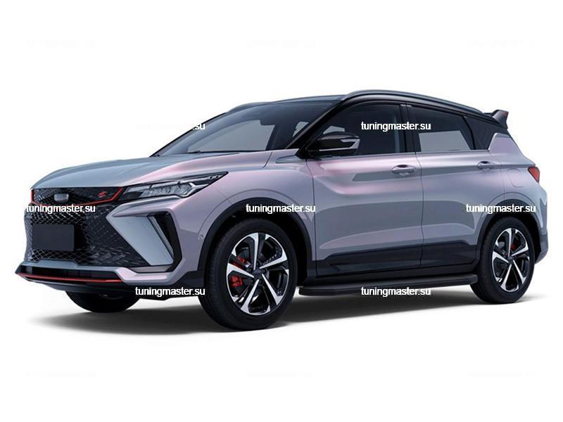 Боковые ступени для Geely Coolray выдержат высокую нагрузку до 150 кг. Крепеж и инструкция по установке в комплекте.