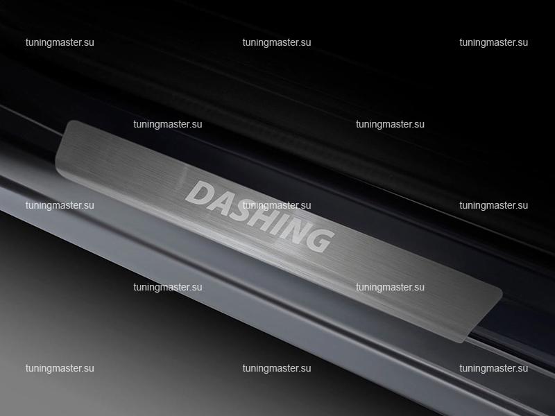Накладки на пороги Jetour Dashing с логотипом. Для автомобилей с 2022 года. Декоративные накладки на внутренние пороги с логотипом марки автомобиля производят из высоколегированной нержавеющей стали и является отличным решением для тюнинга салона автомобиля. Хромированная накладки на пороги геометрической точностью повторяют порог автомобиля. Накладки на пороги выполняют не только декоративную функцию, но и защищают поверхность от механических повреждений. Декоративные накладки на внутренние пороги автомобиля надежно крепятся с помощью 3М-скотча. В комплекте 4 шт.