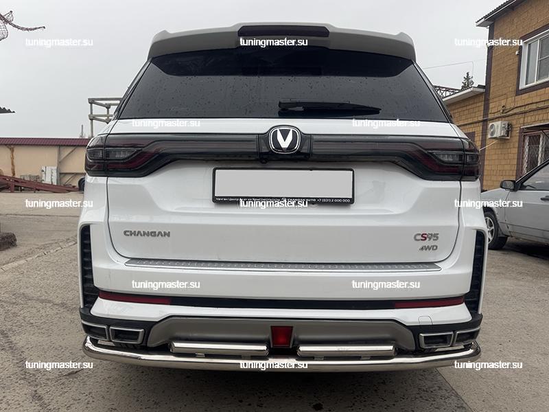 Защита заднего бампера Changan CS95 угловая большая двойная диаметром 60/42 см. Для автомобилей с 2023 года выпуска. Навесное оборудование для внедорожника Чанган ЦС95 производится из высококачественной нержавеющей стали. Такая деталь тюнинга способна придать Вашему внедорожнику индивидуальный внешний вид и свести все возможные механические повреждения к минимуму. Защита заднего бампера устанавливаются на заднюю часть автомобиля. Защита бампера устанавливается в штатные отверстия, предусмотренные заводом изготовителем. Вся продукция сертифицирована. Защита бампера соответствует требованиям Технического регламента Таможенного союза «О безопасности колесных транспортных средств». Крепеж и инструкция по установке в комплекте.