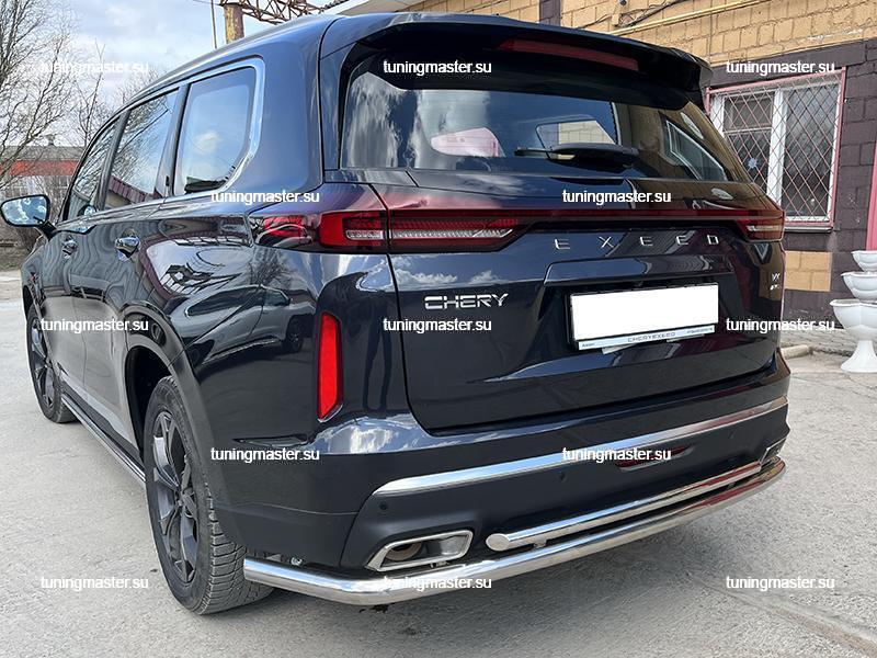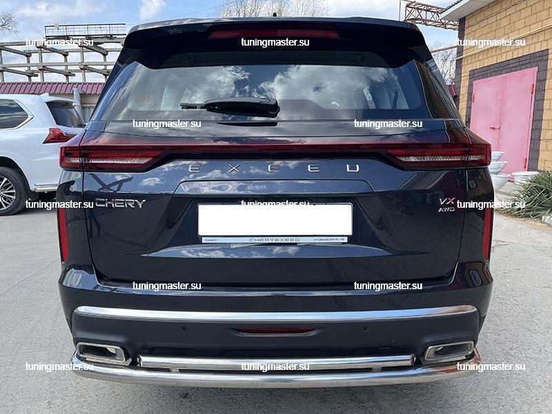 Защита заднего бампера Chery Exeed VX угловая большая двойная диаметром 60/42 см. Для автомобилей с 2022 года выпуска.