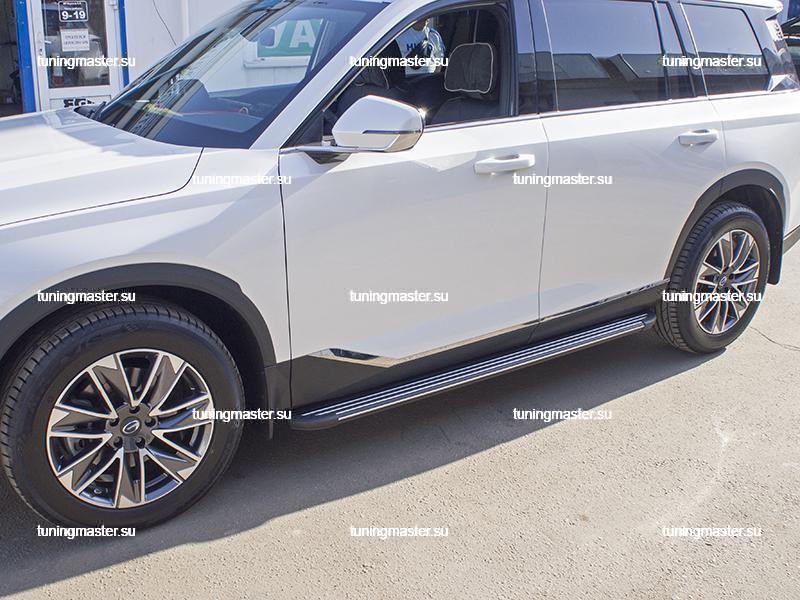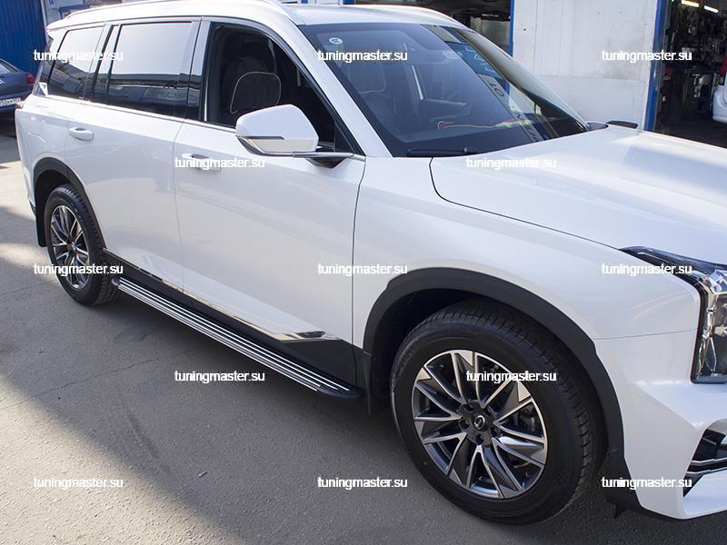 Пороги на GAC GS8 выдержат высокую нагрузку до 150 кг. Крепеж и инструкция по установке в комплекте.